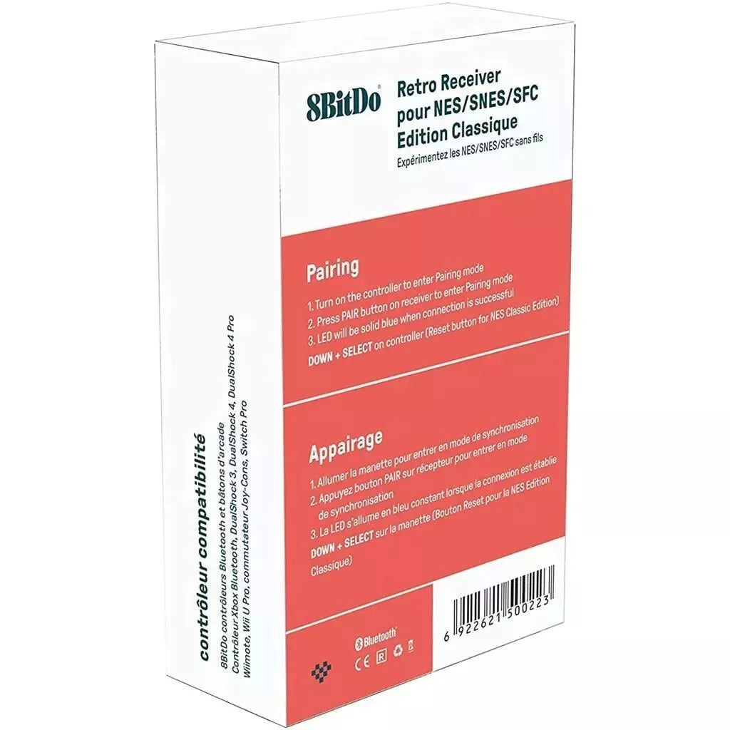The 8BitDo Retro Receiver is your ticket to wireless gaming bliss. Simply plug this compact adapter into your NES or SNES Mini and enjoy lag-free gameplay with your favorite 8BitDo controller or even compatible modern controllers like PS4, Switch, and more. No more couch-surfing restrictions! Immerse yourself in classic gaming with modern convenience